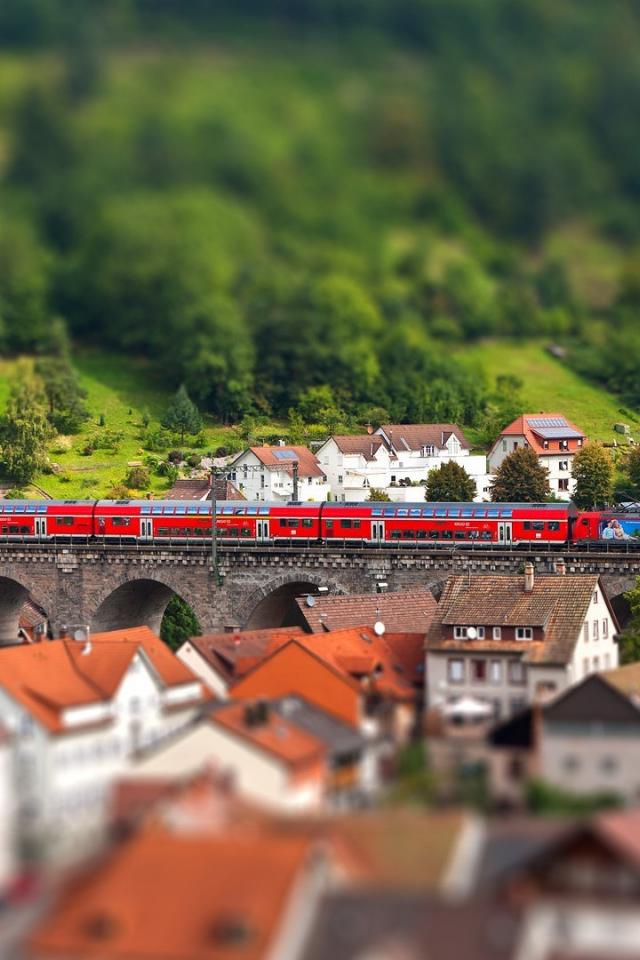Обои Красный поезд на мосту