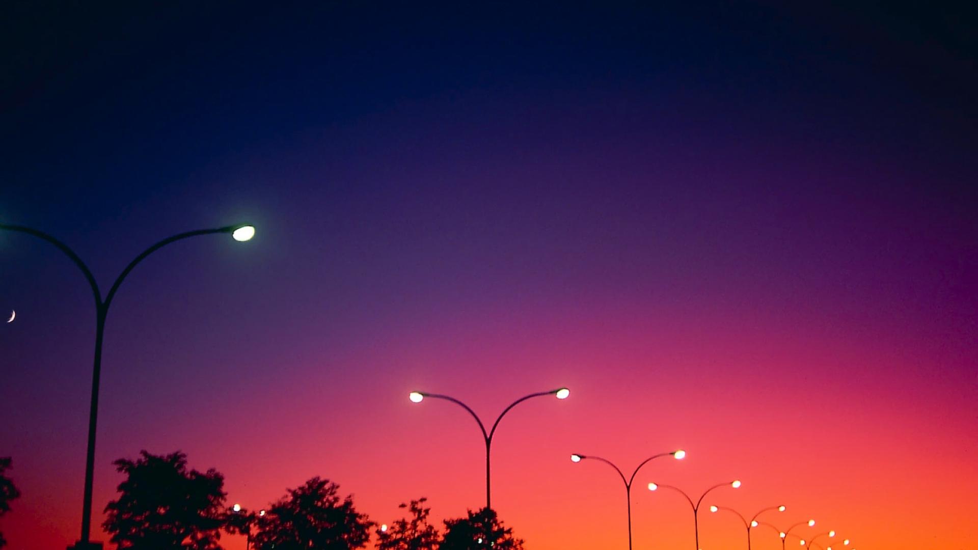 Обои Городские фонари на вечерней заре