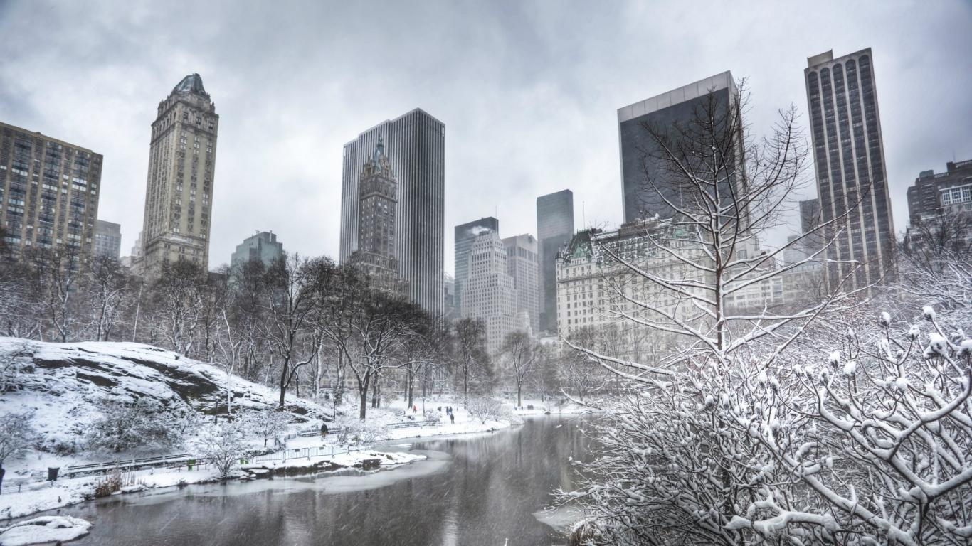 Обои Деревья покрыты инеем в Центральном парке Нью-Йорка