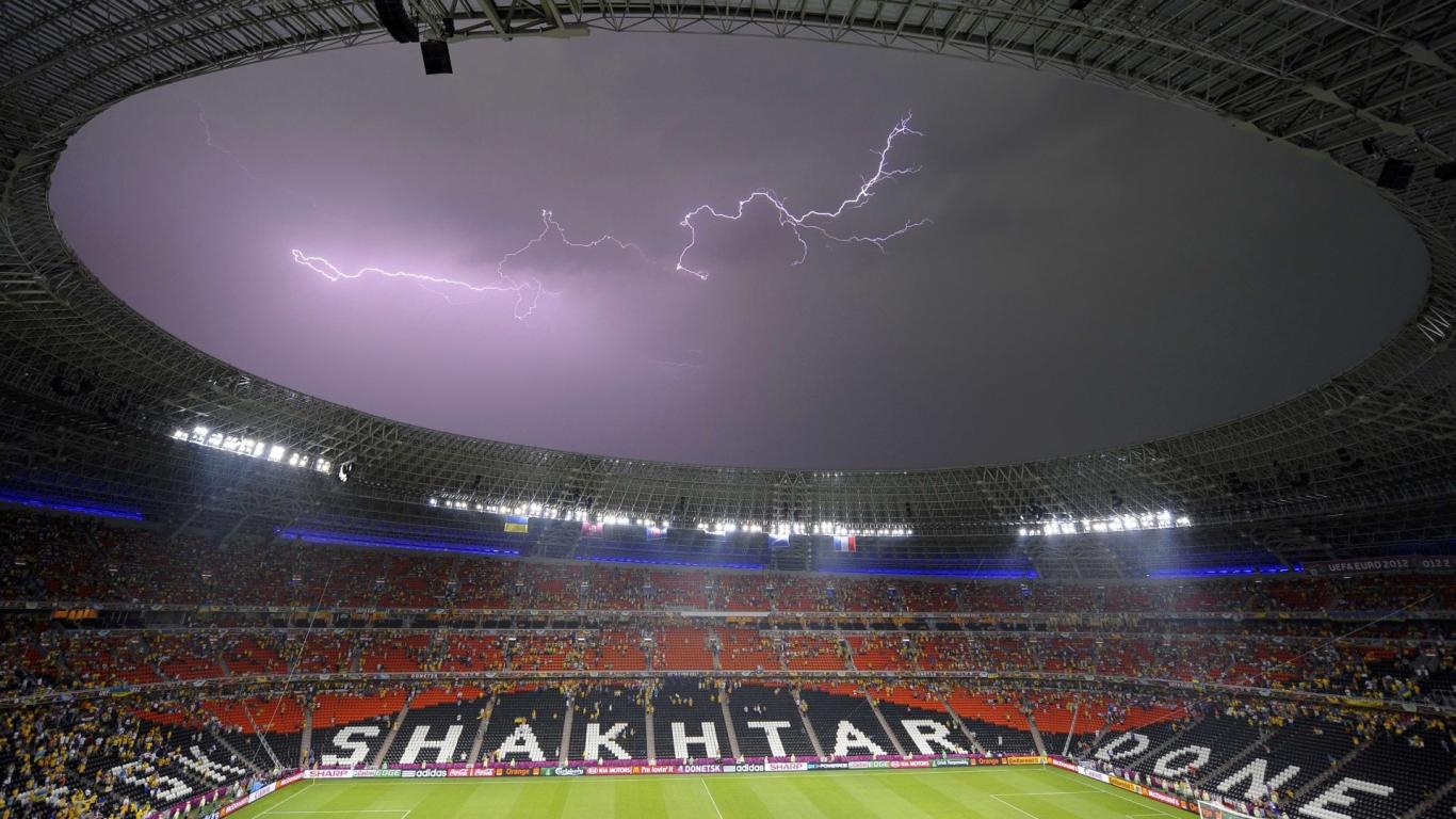 Обои Молния над Донбасс ареной в Донецке