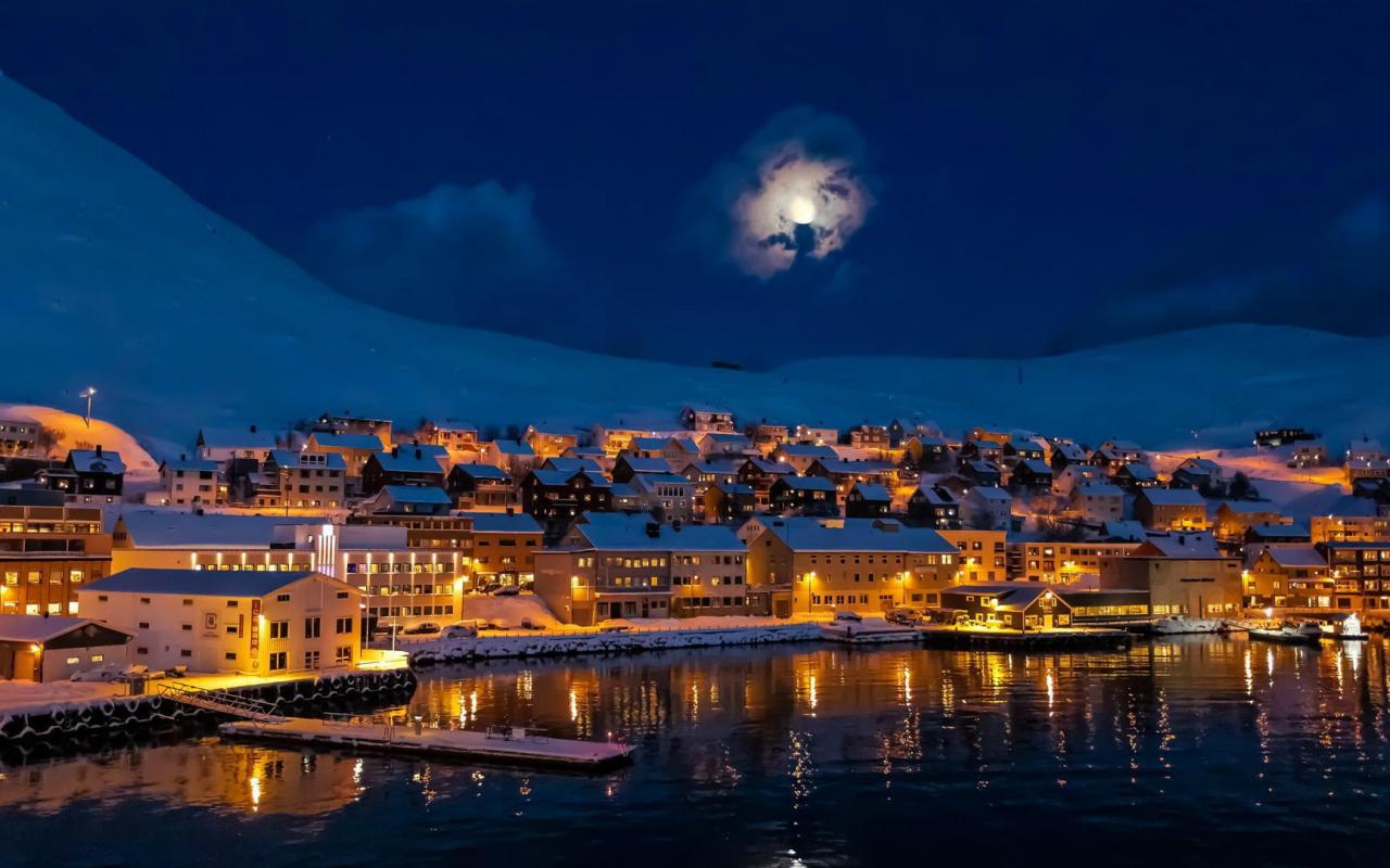 Обои Луна над городом Альту, Норвегия