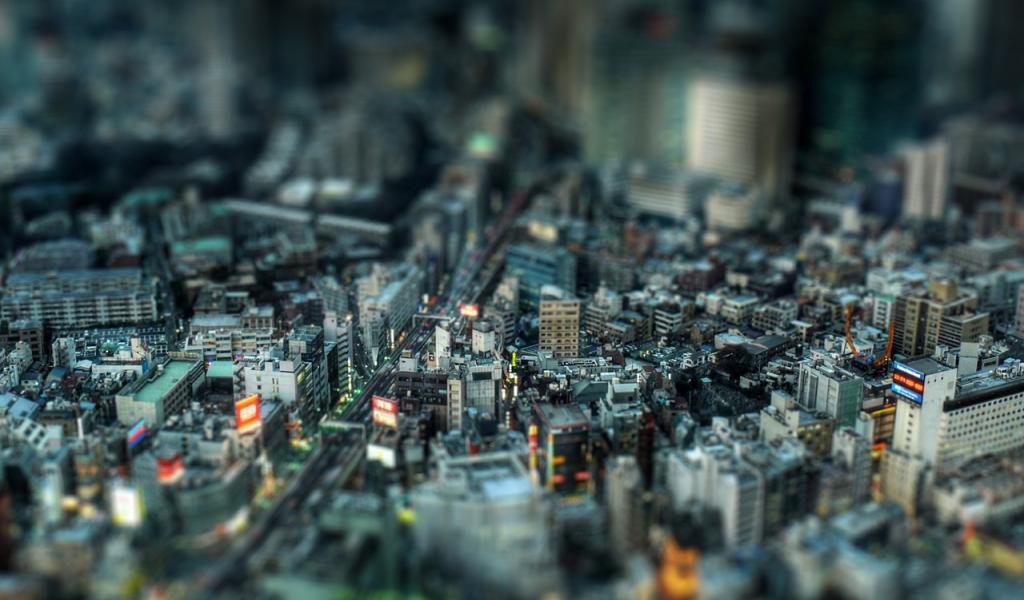 Обои Панорама туманного города, фото через линзу рыбий глаз