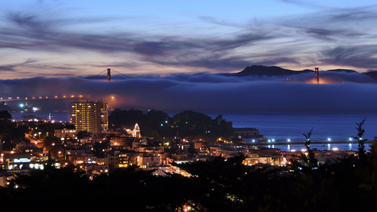 Обои Калифорнийский мост в тумане