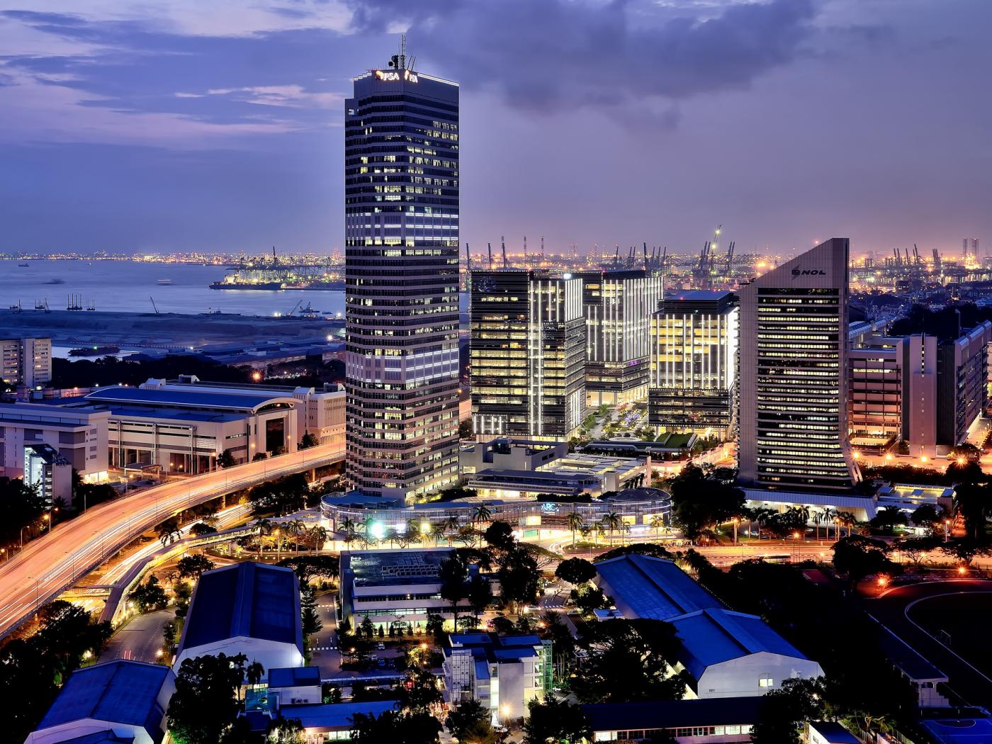 Обои Сингапур, Огни, Отражение, Небоскреб