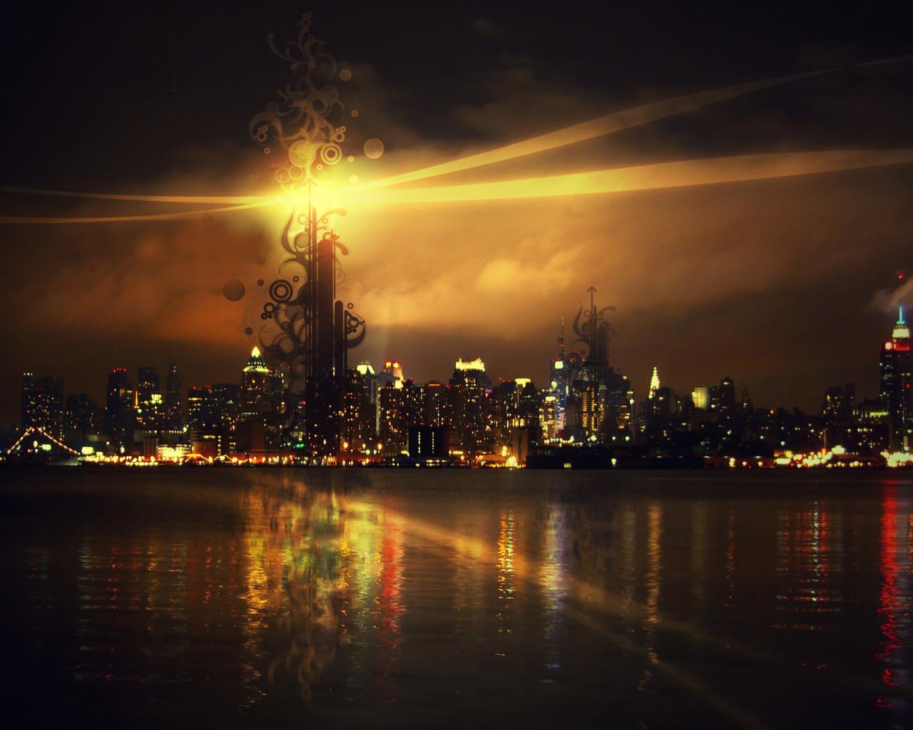 Обои Городской пейзаж с огнями