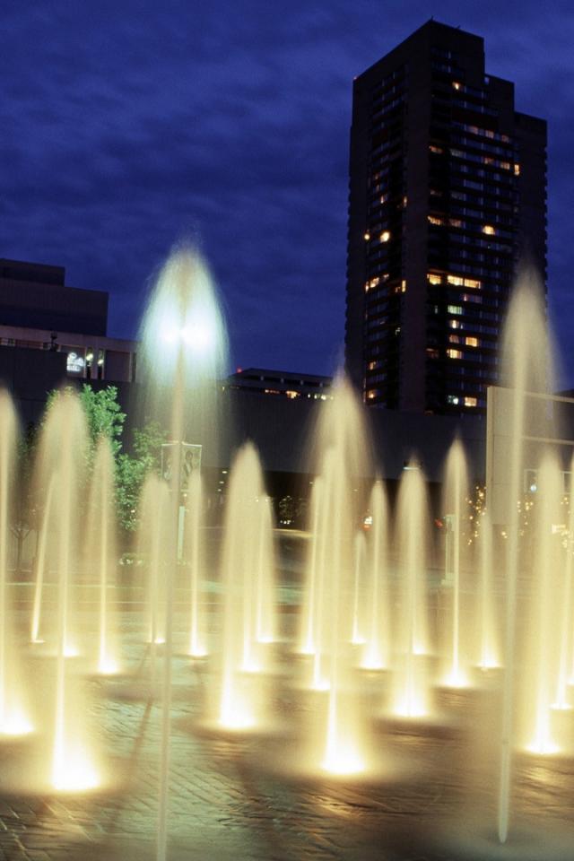 Обои Световой фонтан ночью