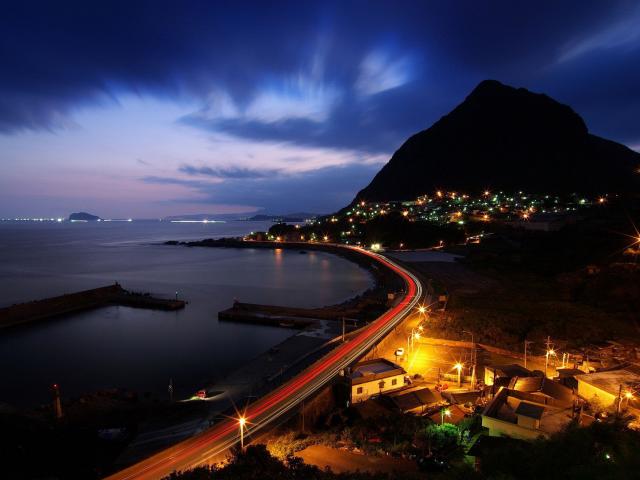 Обои Город на берегу моря ночью