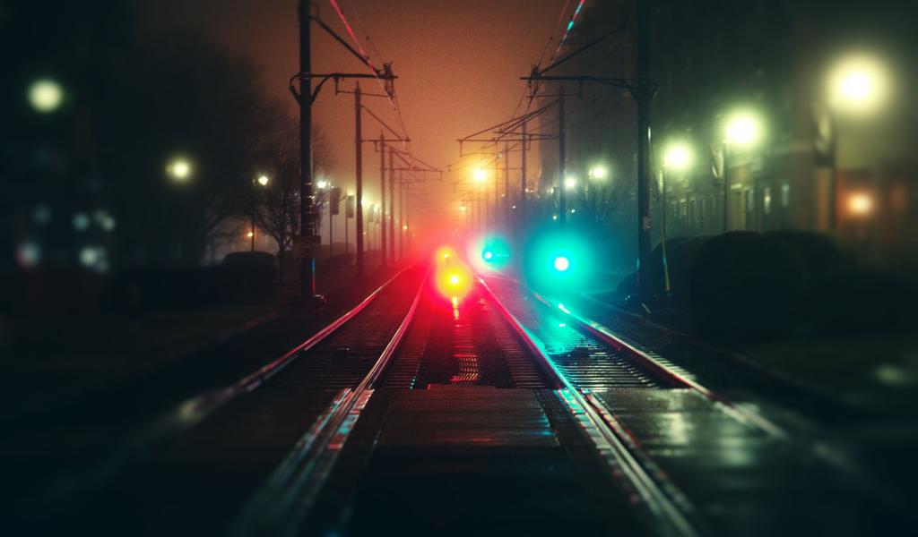 Обои Ночь, рельсы, огоньки