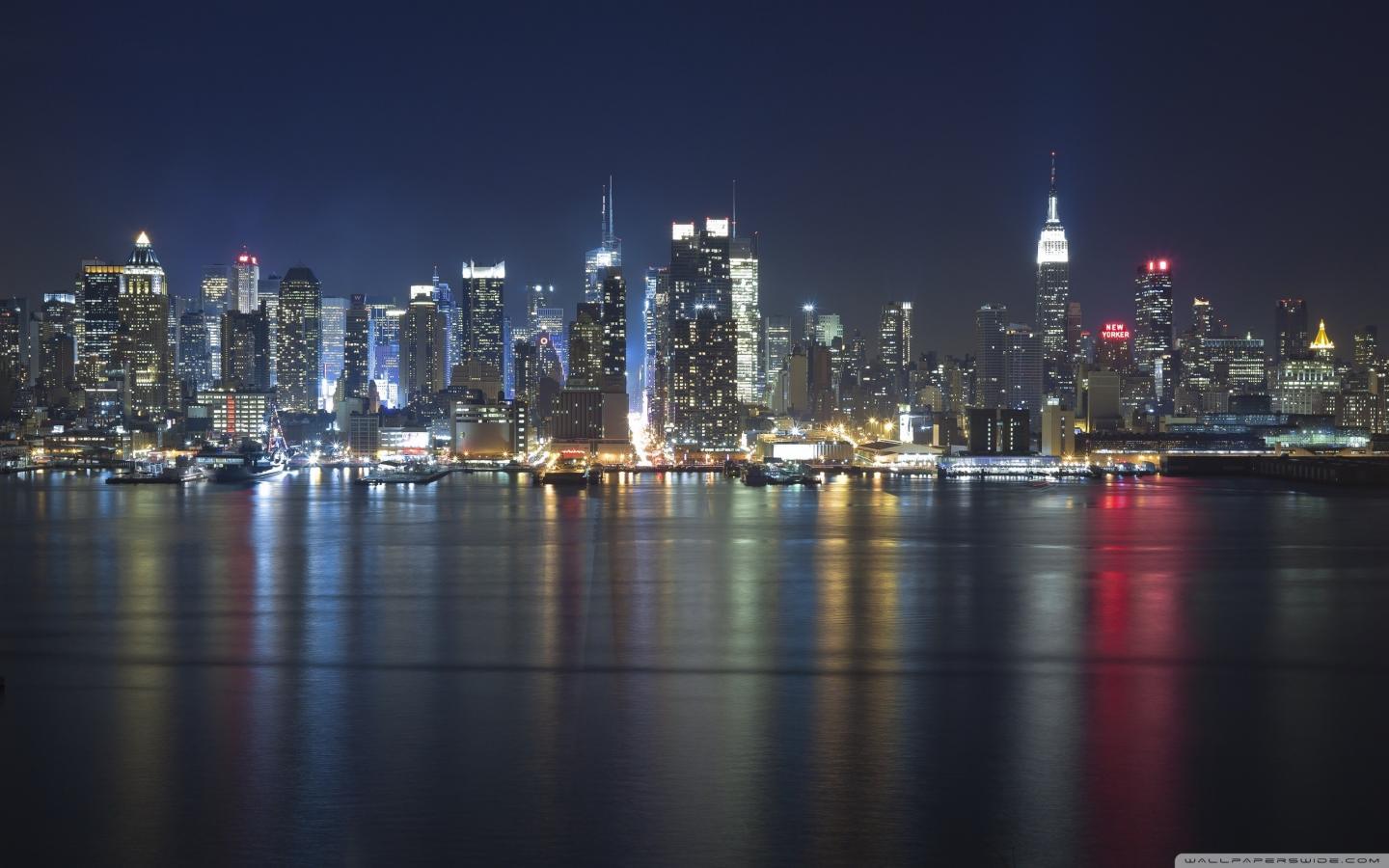 Обои Ночной город, Манхэттен, Небоскреб
