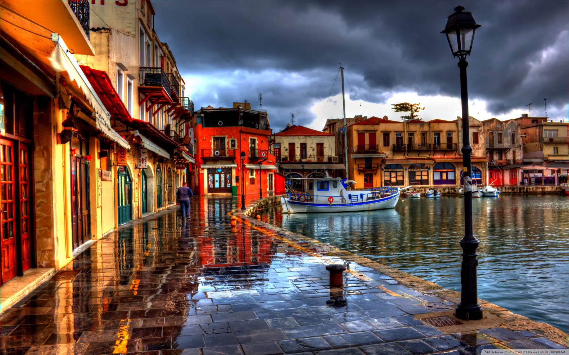 Обои Старый город, Пирс, Лодка