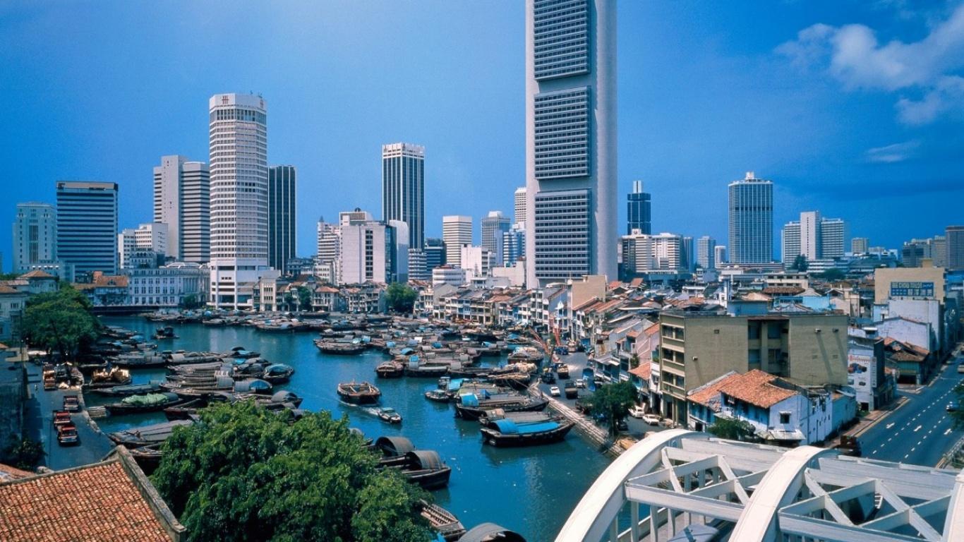 Обои Сингапур, Огни, Отражение, Небоскреб
