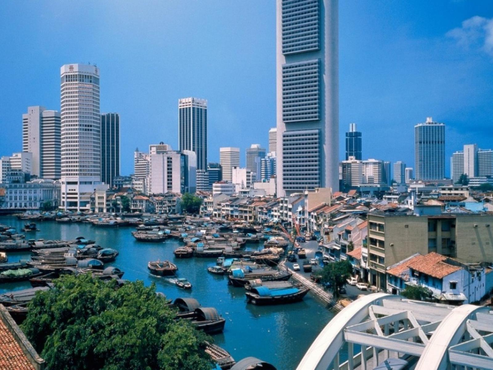 Обои Сингапур, Огни, Отражение, Небоскреб