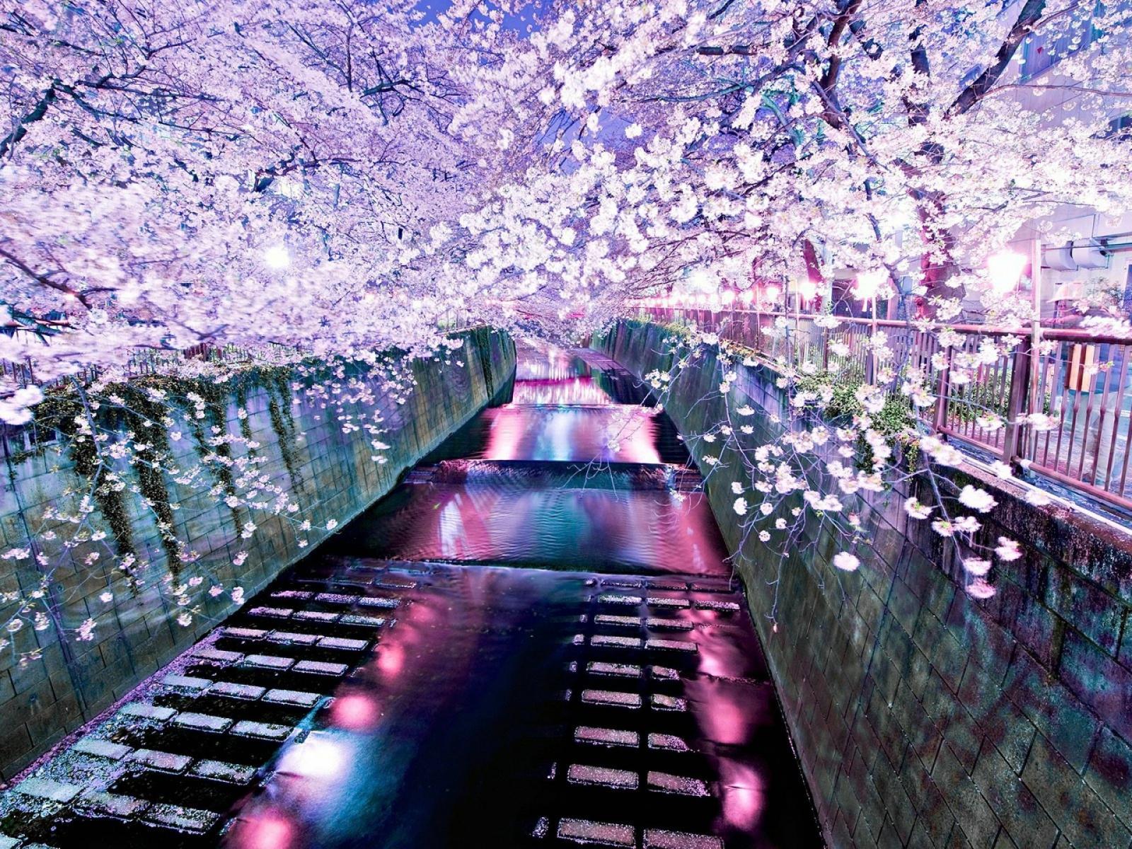 Обои Цветущие деревья над рекой