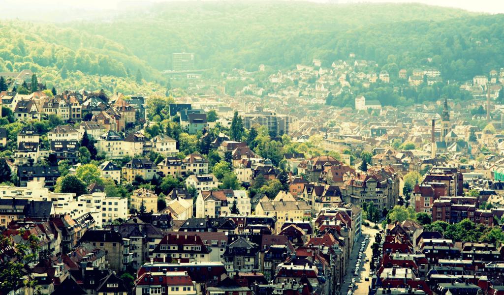 Обои Городок среди холмов