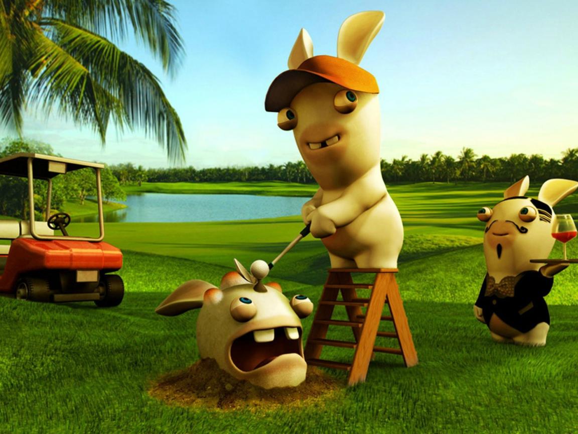 Обои Кролики играют в гольф, игра Rayman Raving Rabbids