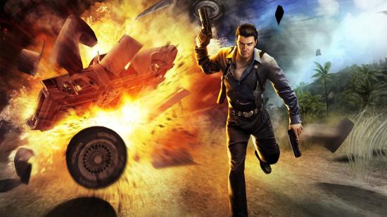 Обои Персонаж игры Just Cause убегает от взрыва