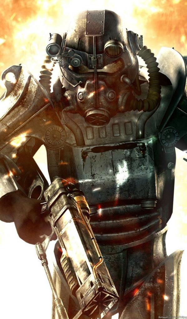 Обои Герой на фоне взрыва в игре Fallout New Vegas