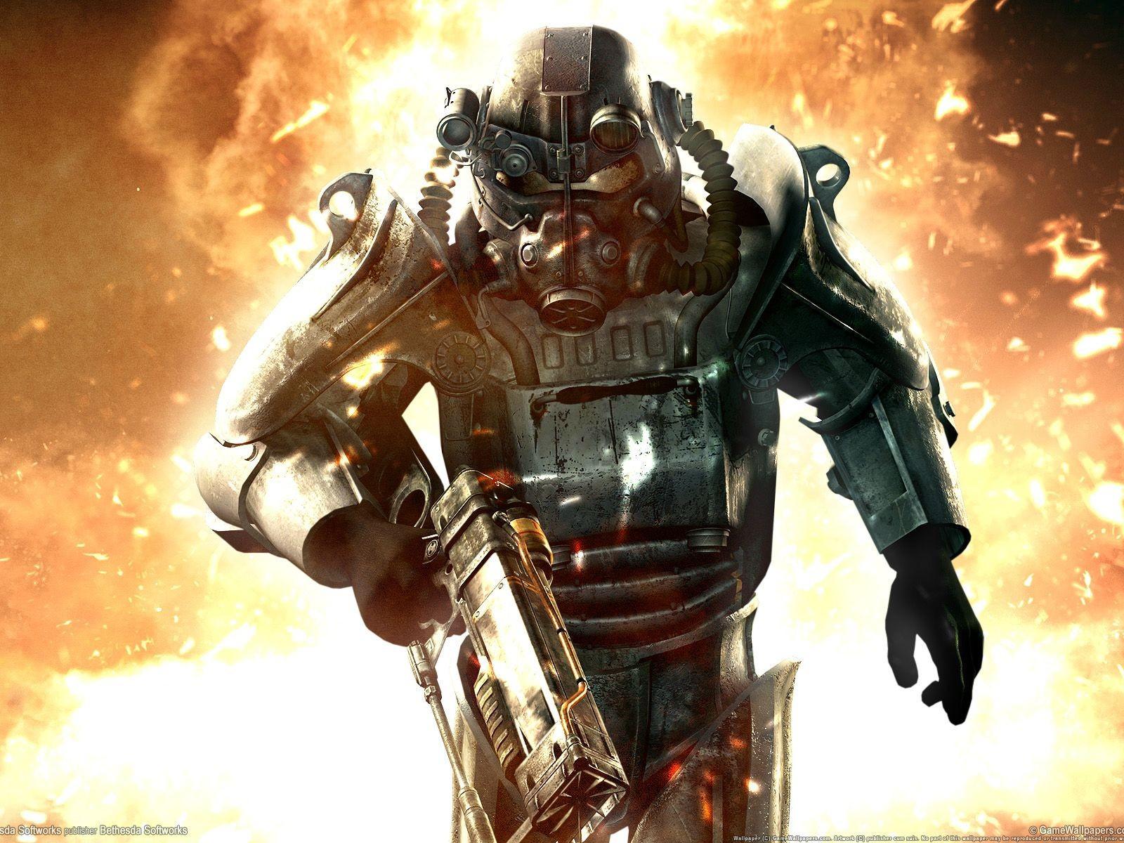 Обои Герой на фоне взрыва в игре Fallout New Vegas