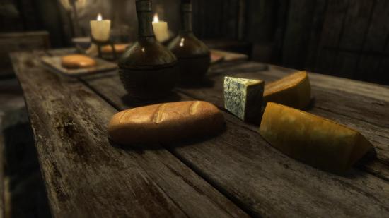 Обои Хлеб и куски сыра на столе в игре