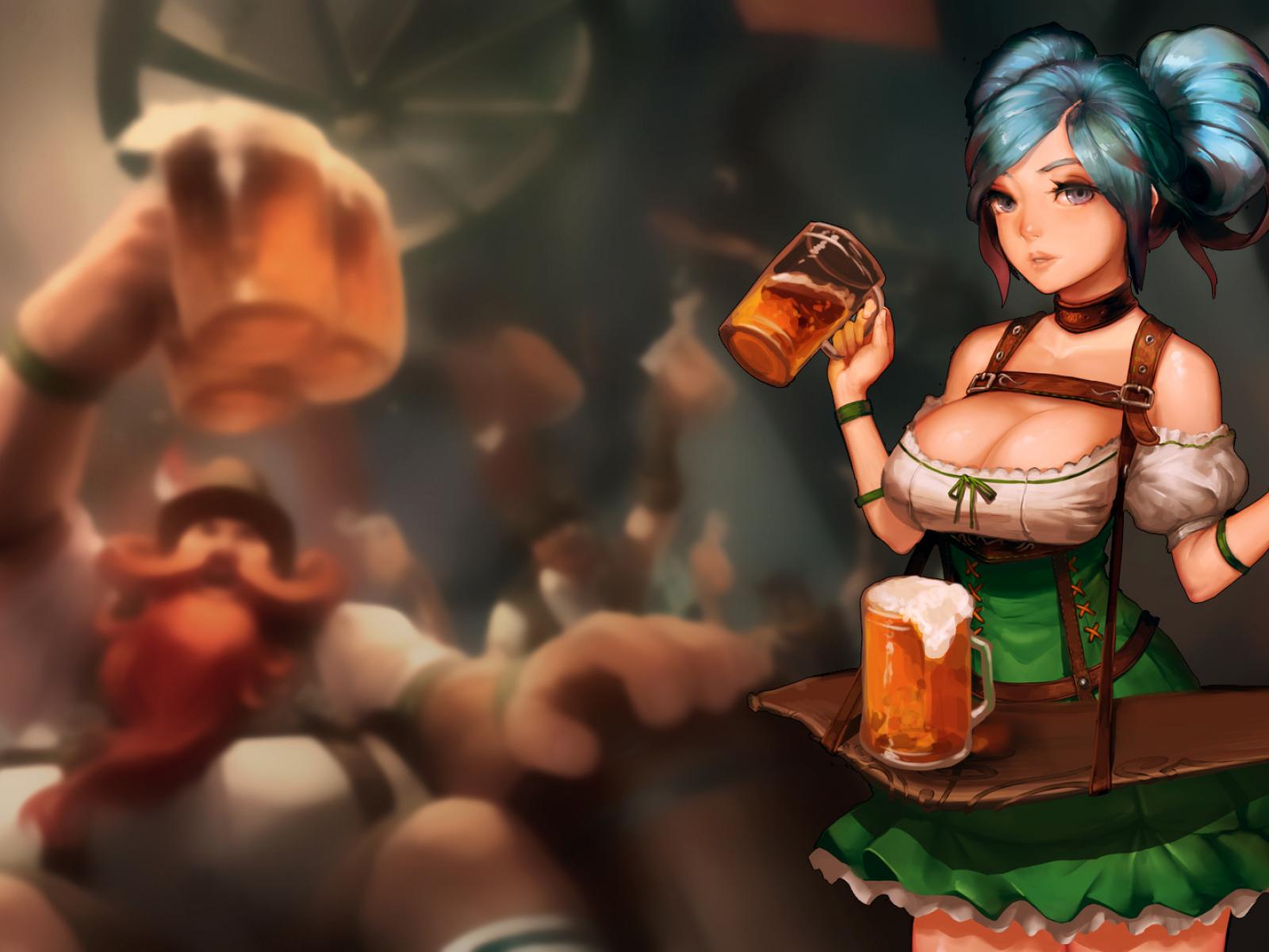 Обои Девушка с пивом