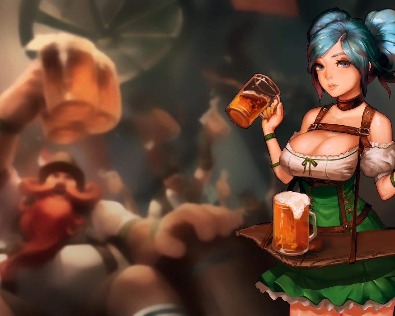 Обои Девушка с пивом