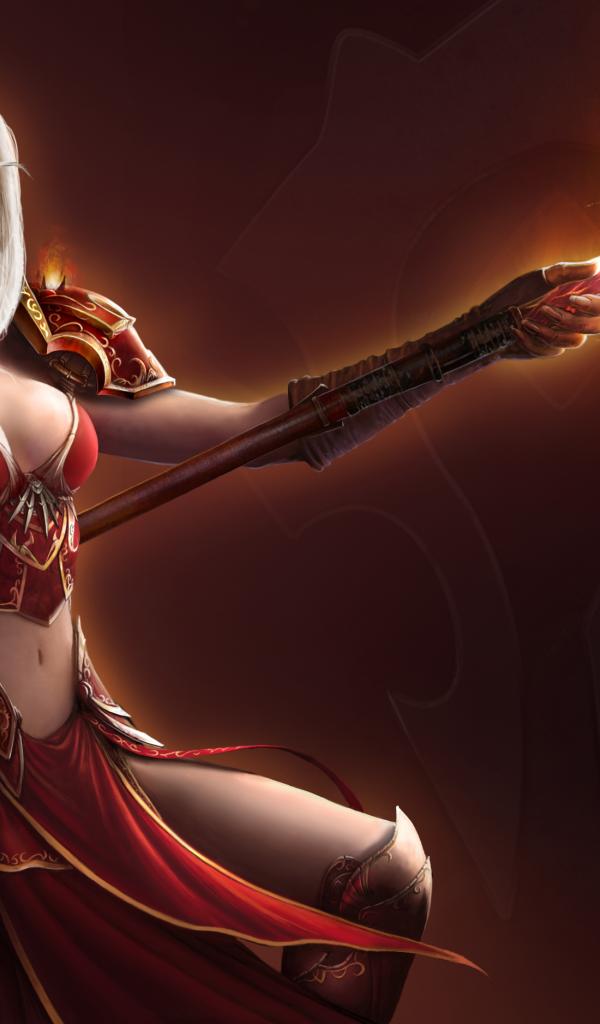 Обои Огонь, World of Warcraft, эльфийка