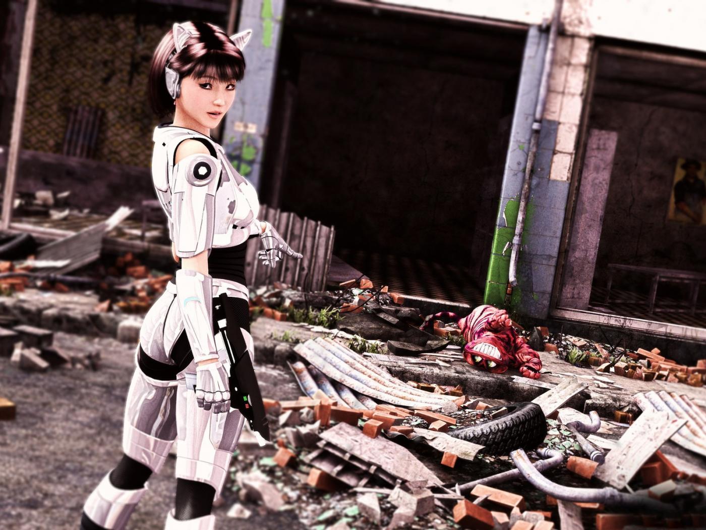 Обои Девушка киборг убила монстра