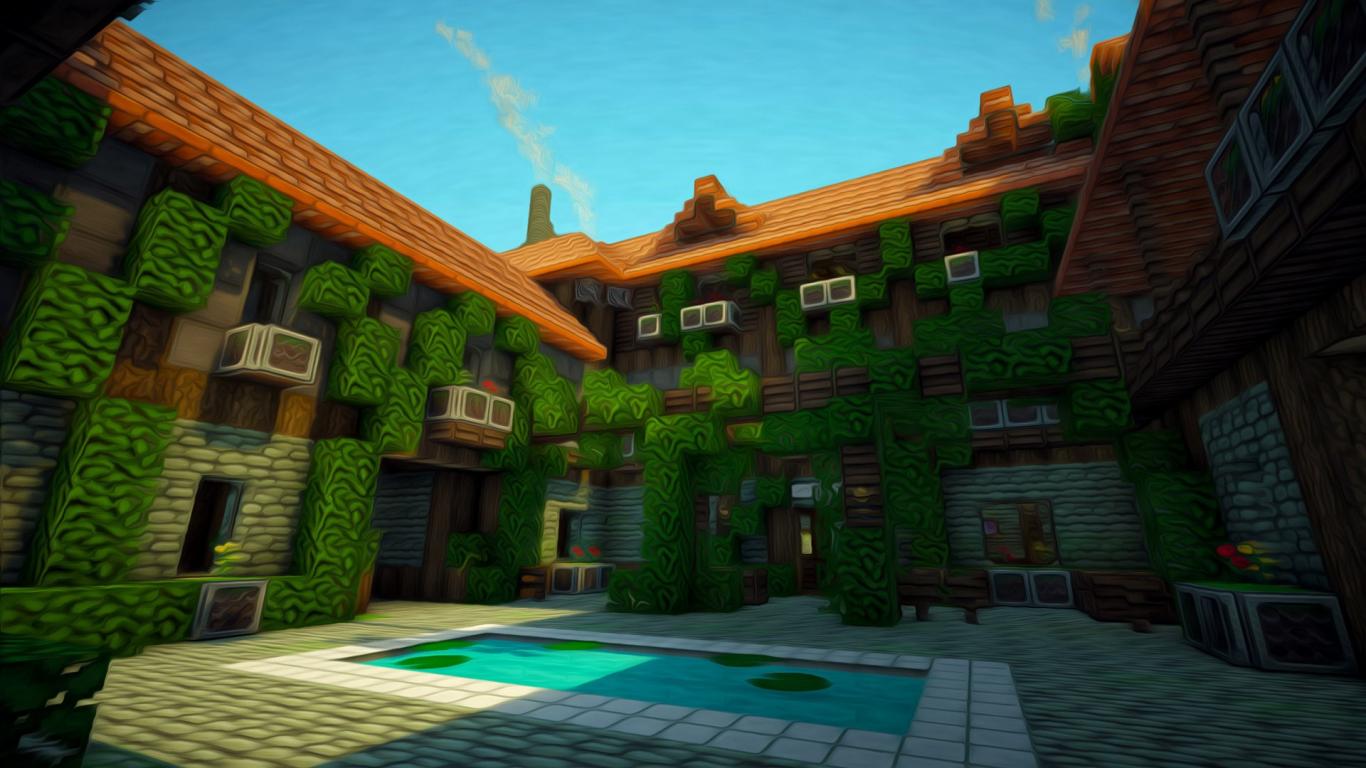 Обои Особняк, Бассейн, Minecraft, кондиционер