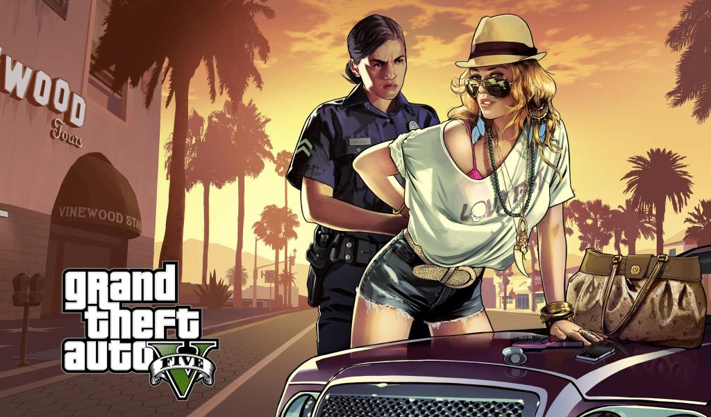 Обои GTA 5 арест на капоте машины