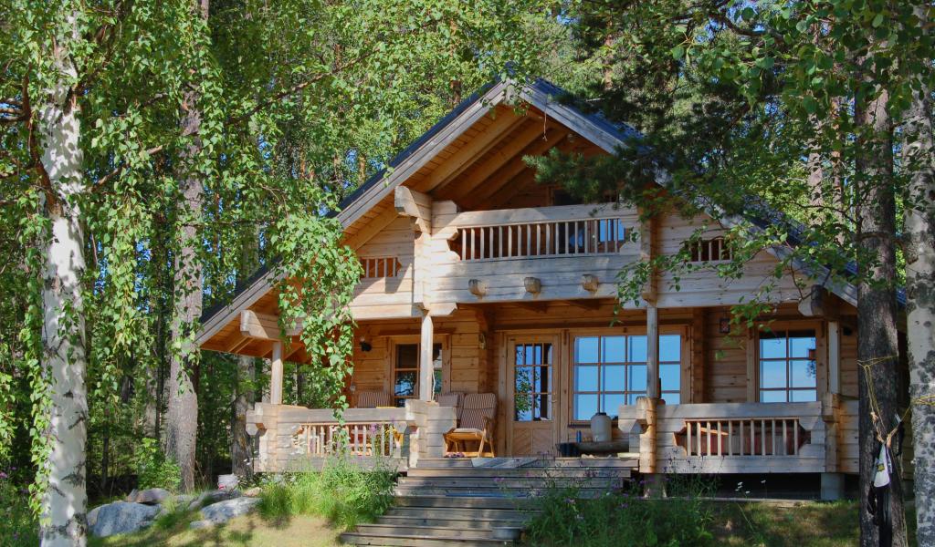 Обои Деревянный дом в зимнем лесу в Колорадо, США