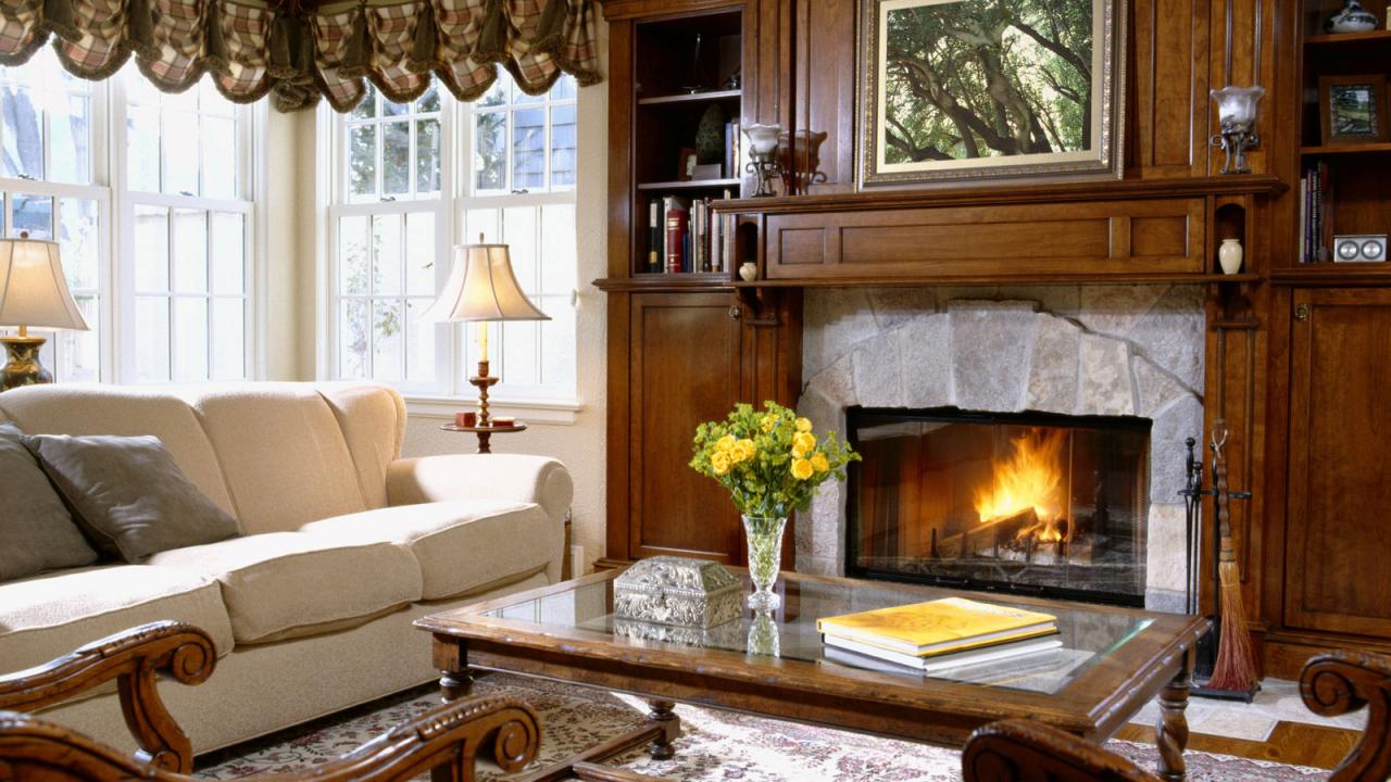 Обои Интерьер гостинной с камином
