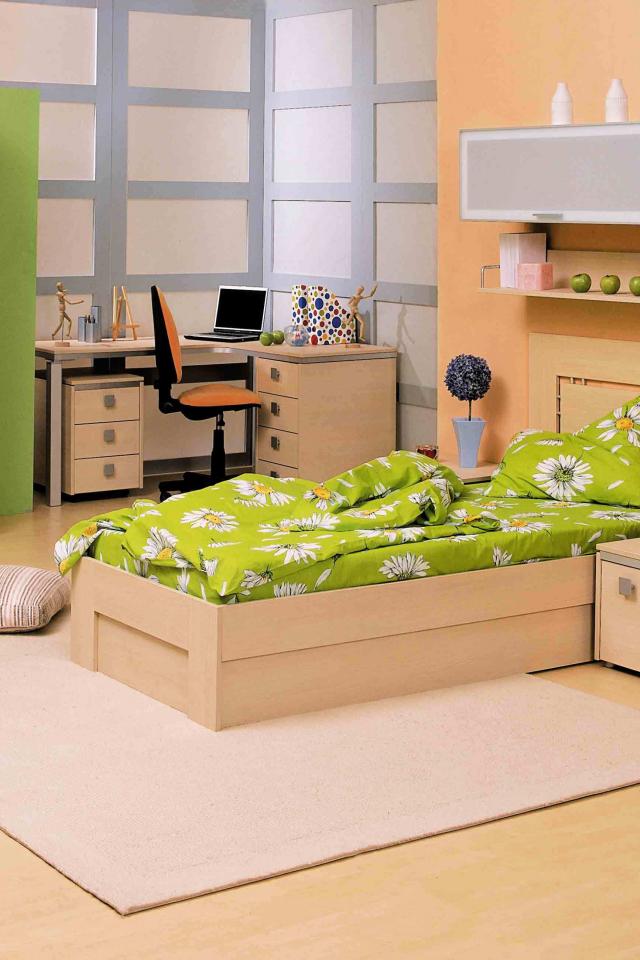 Обои Зеленая кровать в детской комнате