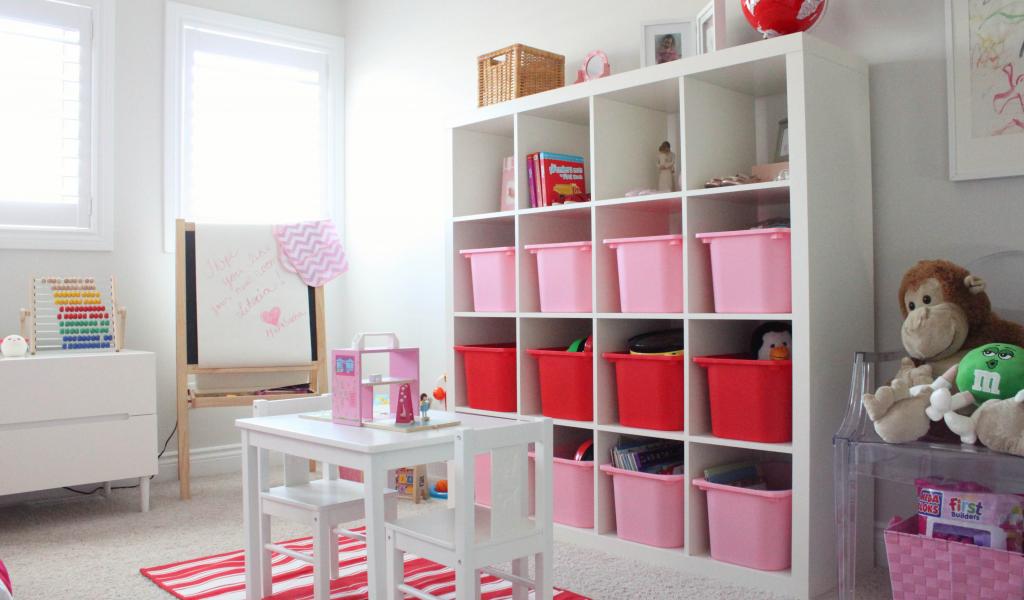 Обои Розовые и красные ящики для игрушек