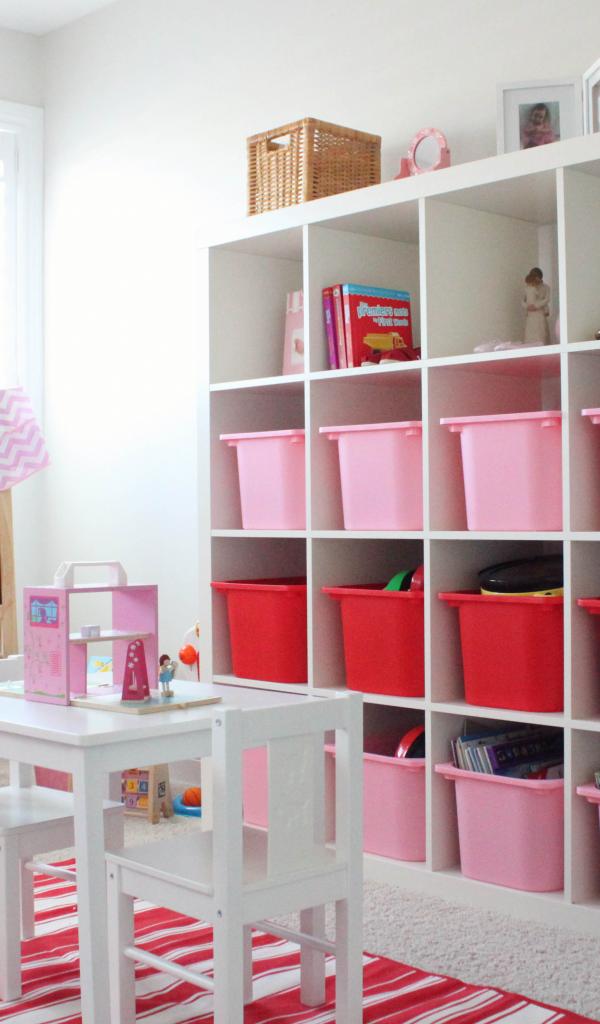 Обои Розовые и красные ящики для игрушек