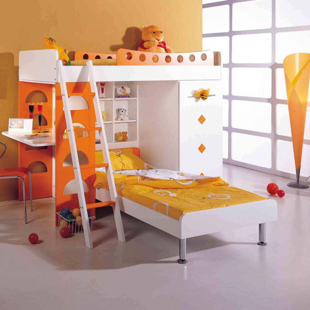 Обои Оранжевая кровать в детской комнате