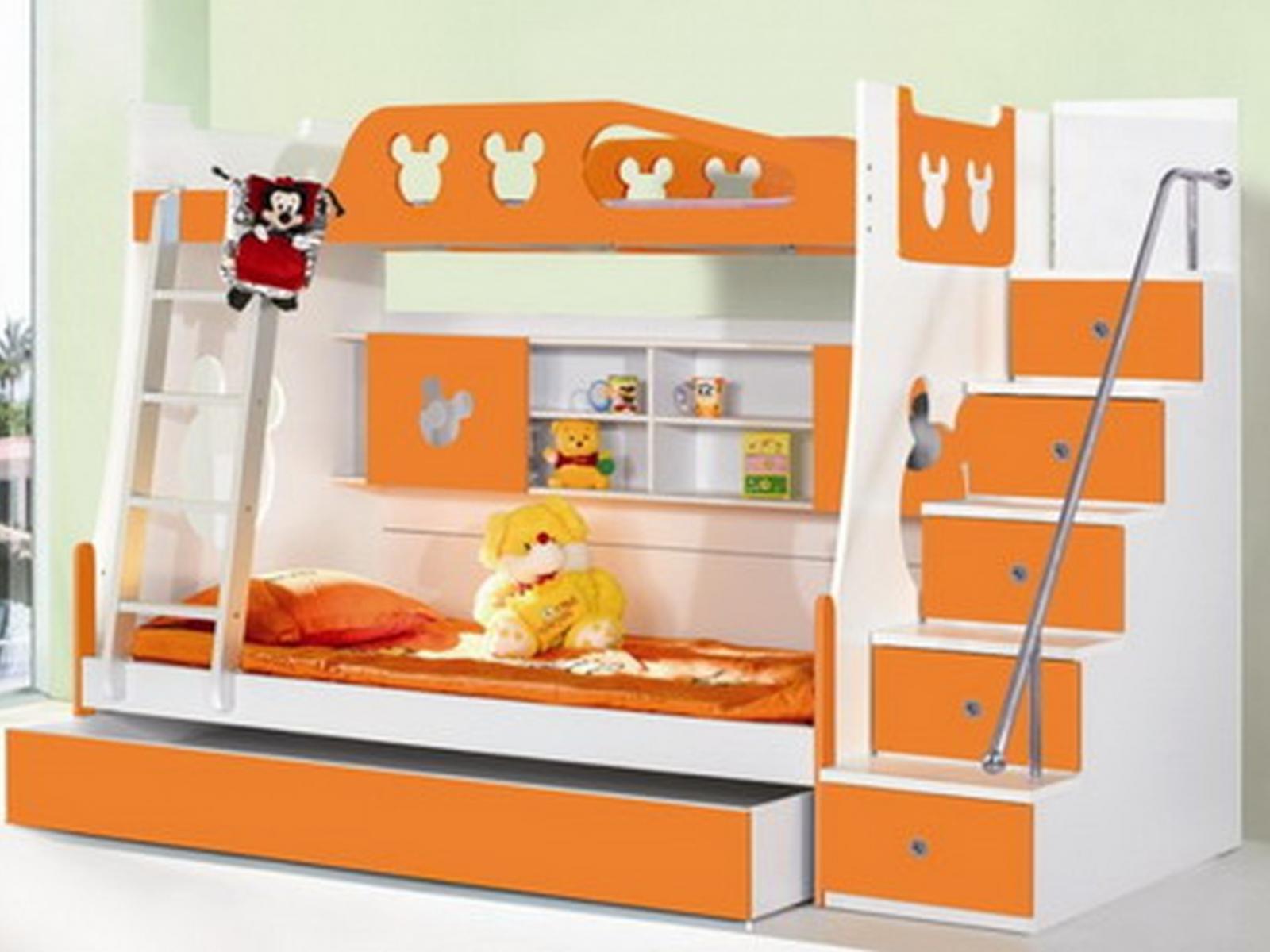Обои Оранжевая кровать в детской комнате