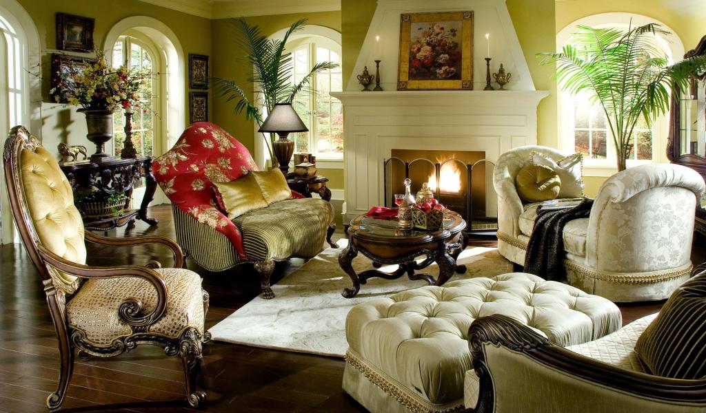 Обои Комната с камином в стиле ретро