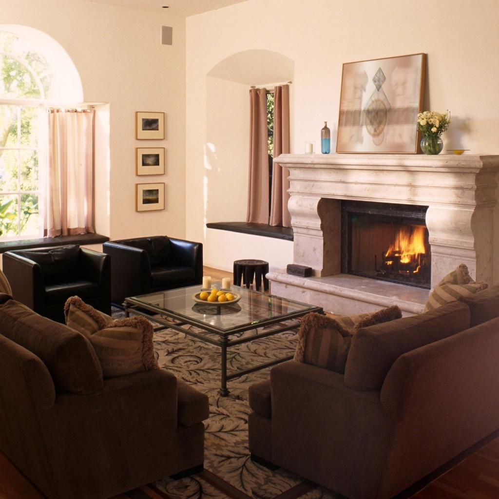 Обои Интерьер гостинной с камином