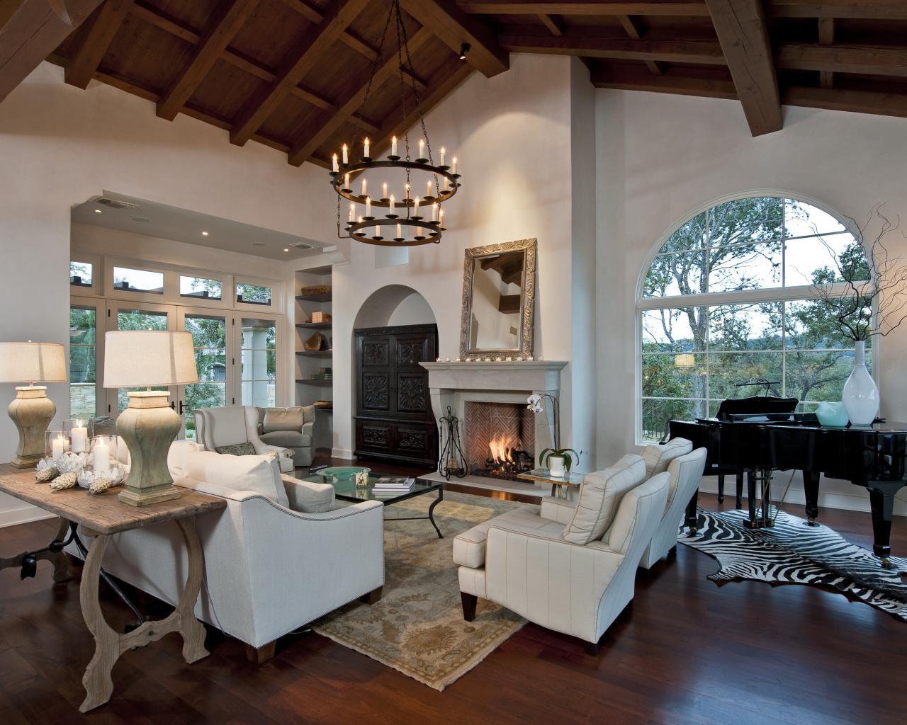 Обои камин, комната, окно