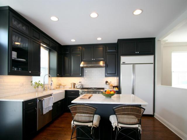 Обои Черная мебель на кухне