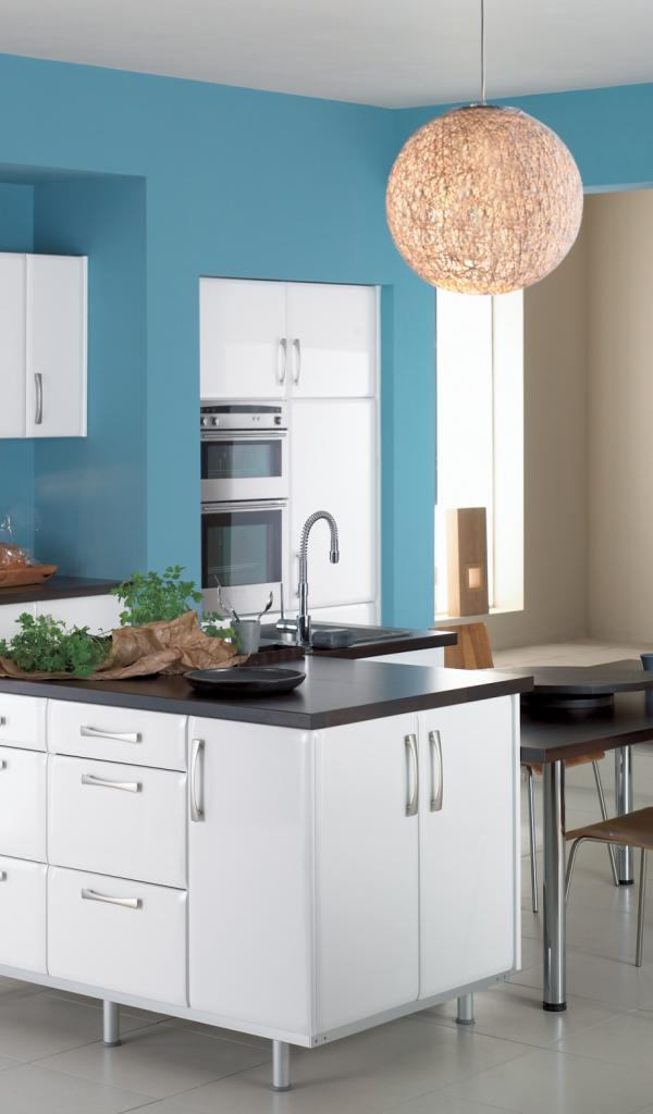 Обои Просторная голубая кухня