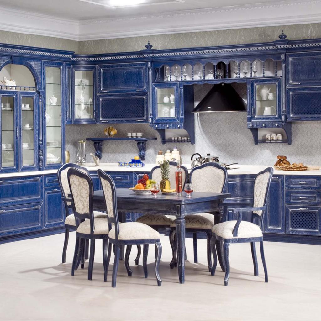 » Обои Просторная синяя кухня