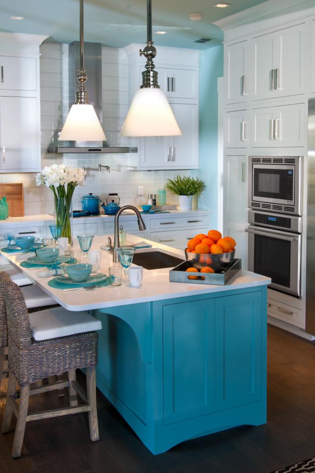» Обои Голубой стол в кухне