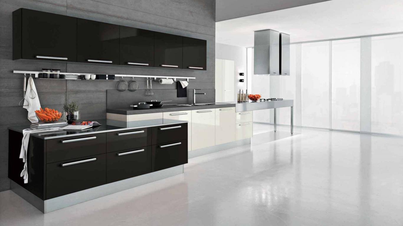 Обои Большая черная кухня