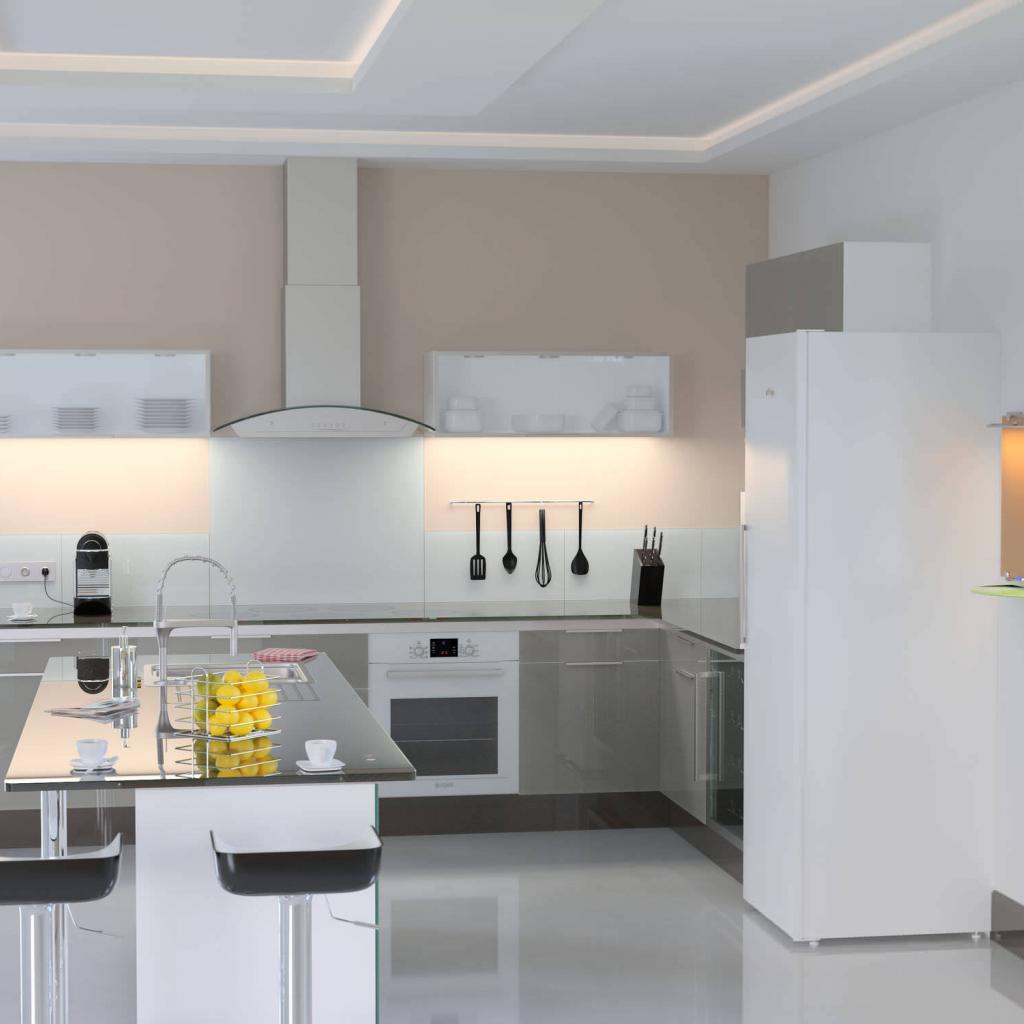 » Обои Белый холодильник в кухне