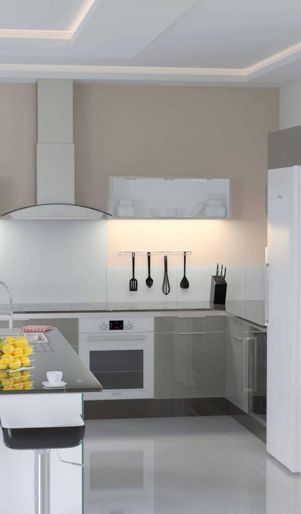 » Обои Белый холодильник в кухне