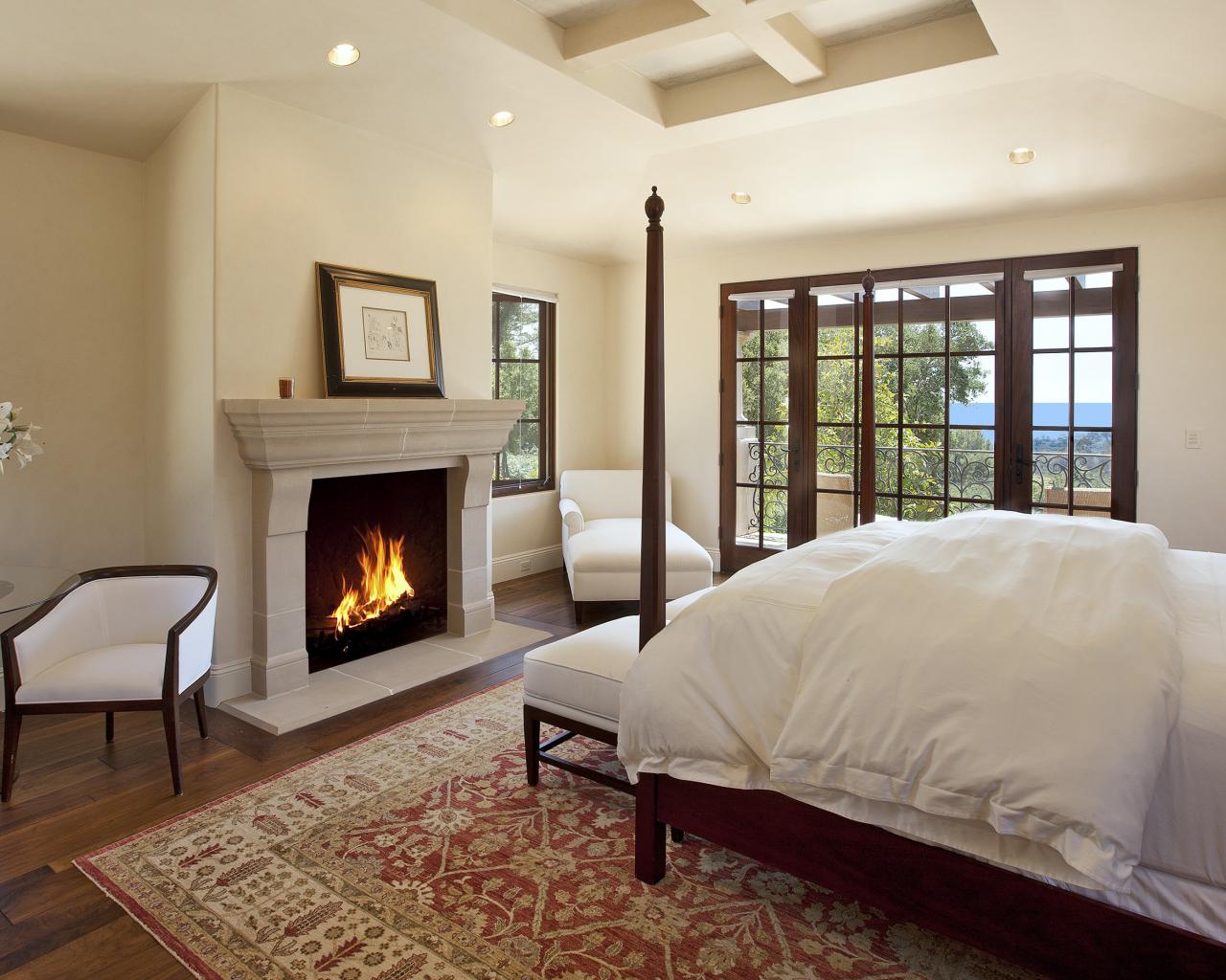 Обои Интерьер Спальня с камином