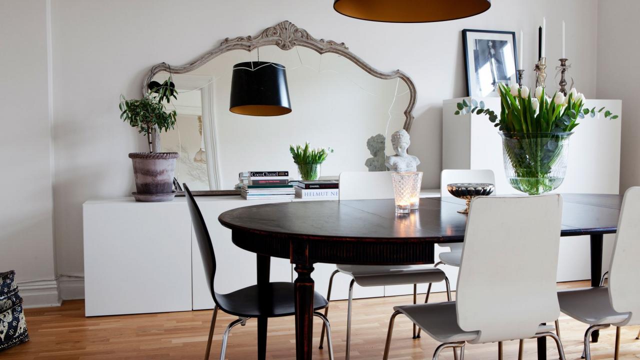 Обои Черная люстра в столовой