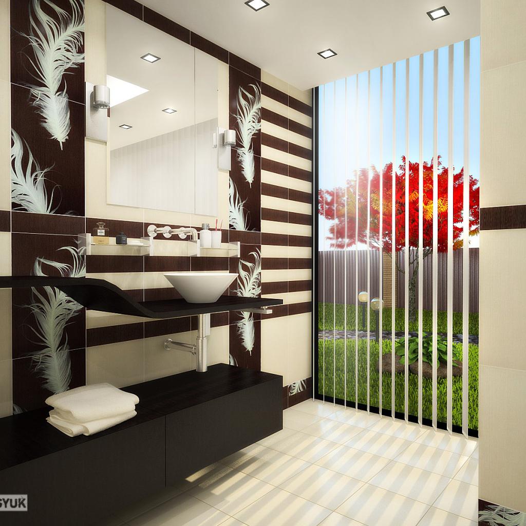 » Обои Красное дерево за окном ванной