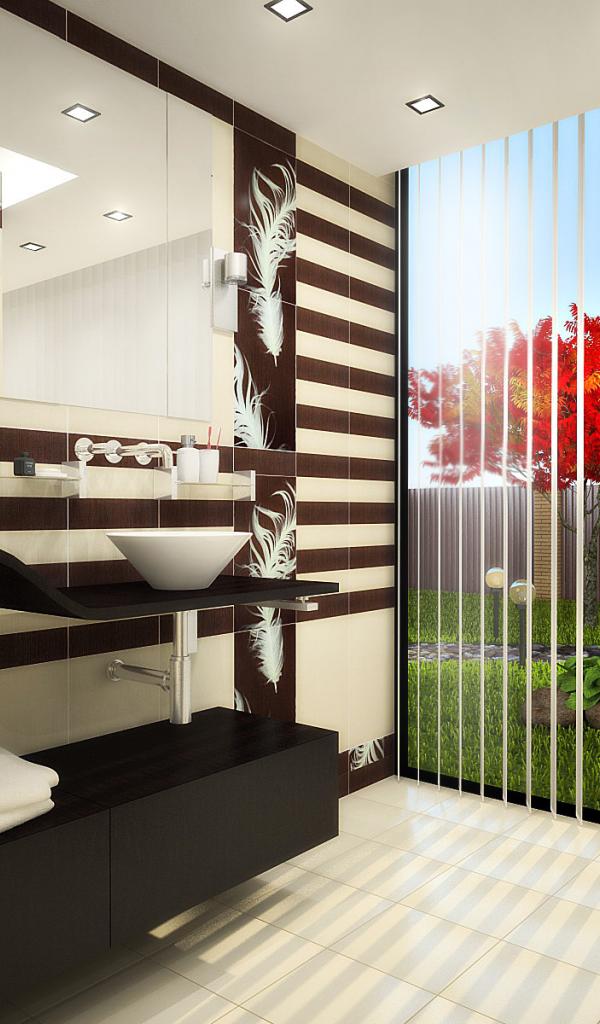 » Обои Красное дерево за окном ванной